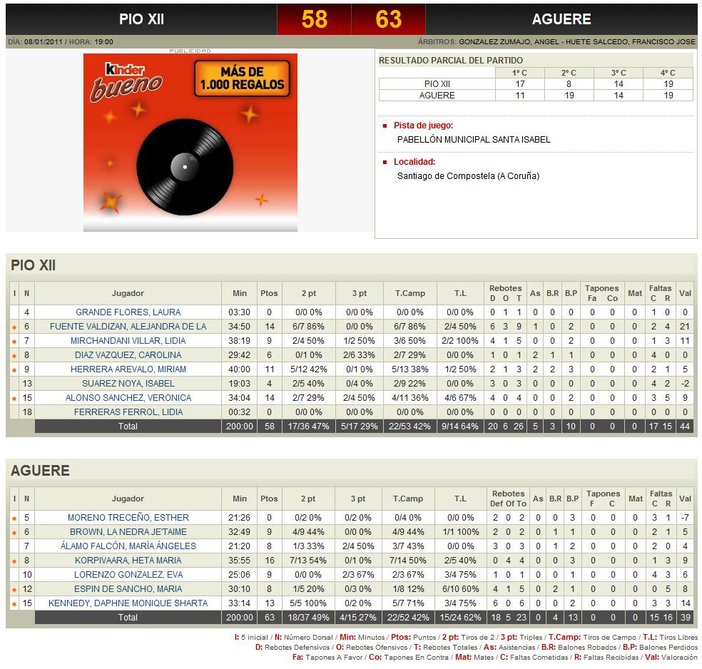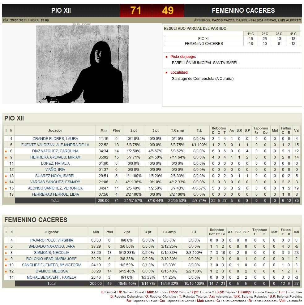 Chiqui Barros"Ha sido una victoria muy trabajada. El Pío XII es un buen equipo y tiene mucha experiencia. Es un equipo que ha sumado varias derrotas, pero siempre por diferencias muy cortas. Defiende mucho por zonas. Además, a nosotros se nos complicaron las cosas con la gastroenteritis de Esther Montenegro. Pero el equipo trabajó bien y con fe en el partido más importante y delicado de lo que va de temporada. Posiblemente es el día que más contento me voy a casa tras un partido".