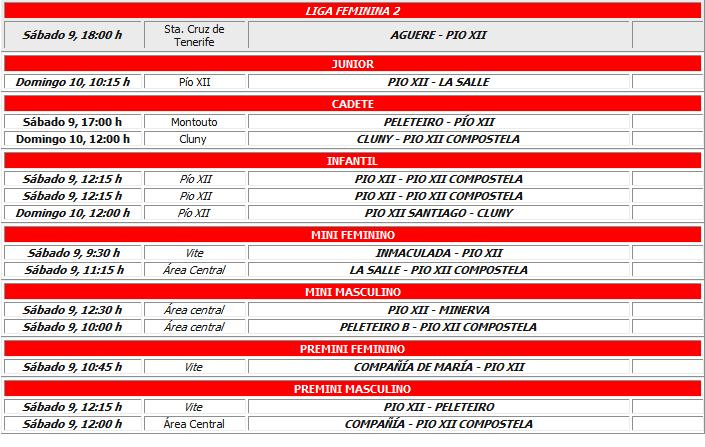En infantiles el Pío XII disputará la Copa Galicia al haberse proclamado campeón de Liga. Mientras empieza ésta, jugará un amistoso ante el Pío XII Compostela. El tercer infantil del club, el Pío XII Santiago, recibirá al Cluny en la primera eliminatoria de la Copa Primavera.